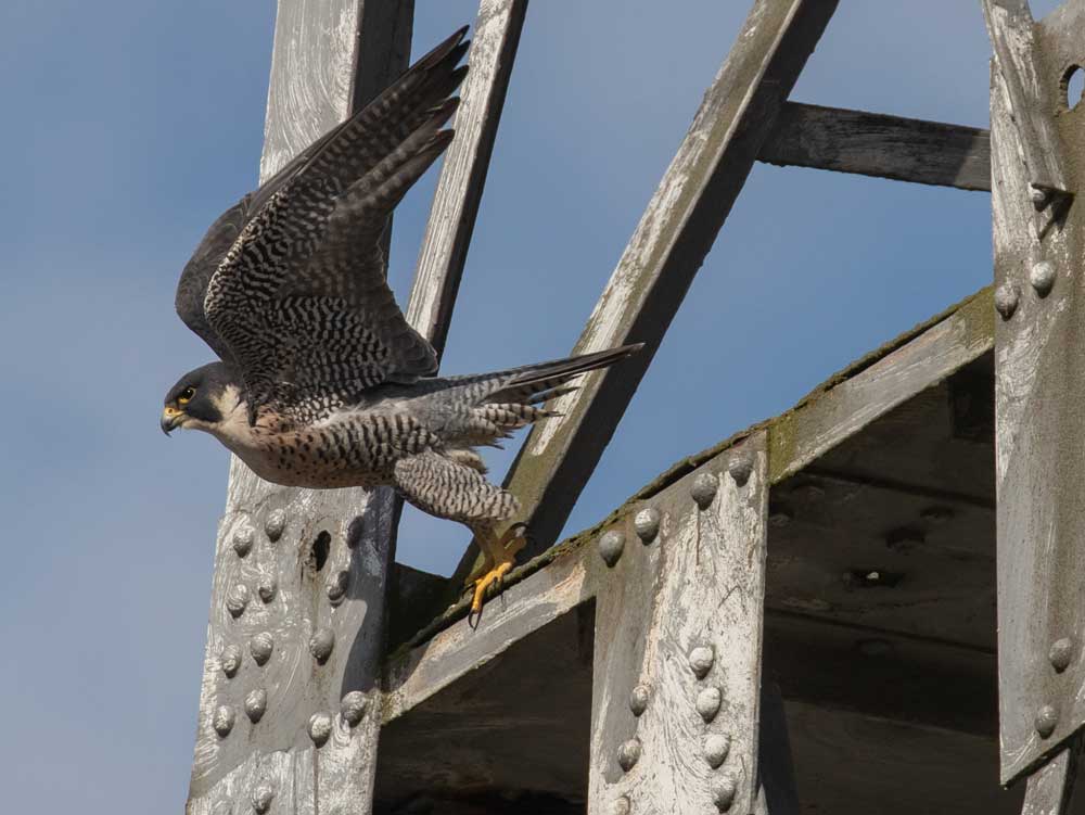 Adult female takes off from tower at West Seattle Bridge  (Jim Riley)