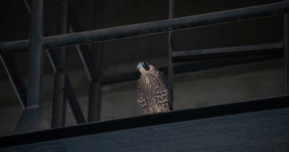 The first 48 hours after an urban peregrine fledgling leaves its eyrie are perilous. Unlike wild eyries, most urban nest sites—under freeway bridges, on skyscrapers—offer scant room for movement and few safe ledges to hop to. A new fledgling will probably glide better than it can fly, and in early flights, it often fails to stick the landing. These inaugural gauntlets often result in injury or death. Sometimes quick-thinking volunteers can orchestrate a rescue from risky situations, with the intention of returning the fledgling to its parents. However, reunions are also risky: will the parents allow their young to come back? With rare exceptions, the answer is yes, a life-saving reward.
